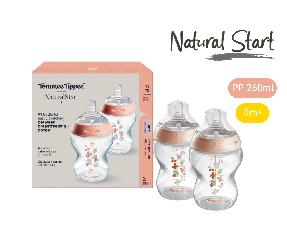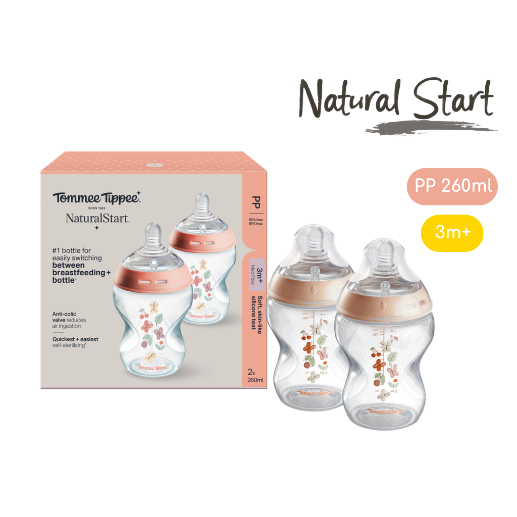 Bình Sữa PP Ty Siêu Mềm Tự Nhiên Tommee Tippee Natural Start 260ml, Núm Ty Của Bình 3-6 Tháng, Hồng (Bình Đôi)