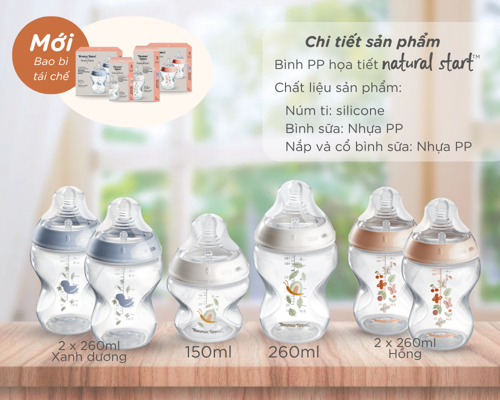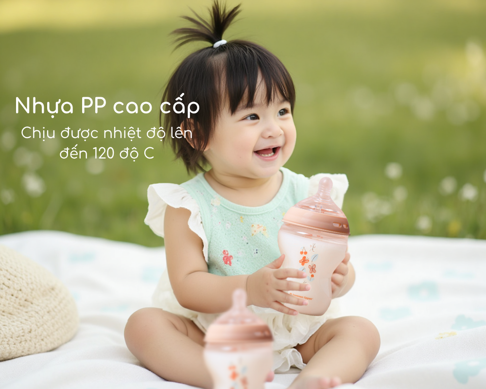 Nhựa PP là chất liệu không chứa hóa chất, chống bám mùi, sử dụng bền lâu và rất dễ cọ rửa làm sạch, do đó đây là vật liệu lý tưởng để làm bình sữa. Giống như tất cả các dòng bình sữa Natural Start khác của Tommee Tippee, bình sữa PP có núm ty siêu mềm tự nhiên, mô phỏng tự nhiên nhất từ xưa đến nay, co dãn đàn hồi và mềm mịn tạo cảm giác như ty mẹ, giúp cho việc chuyển đổi giữa bú mẹ và bú bình trở thành một trải nghiệm thoải mái, không còn lo lắng điều gì.