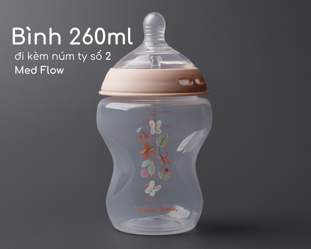 Bình sữa ty siêu mềm tự nhiên Tommee Tippee 260ml hoạ tiết (bình đôi) – Hồng chính hãngTHÔNG TIN SẢN PHẨM