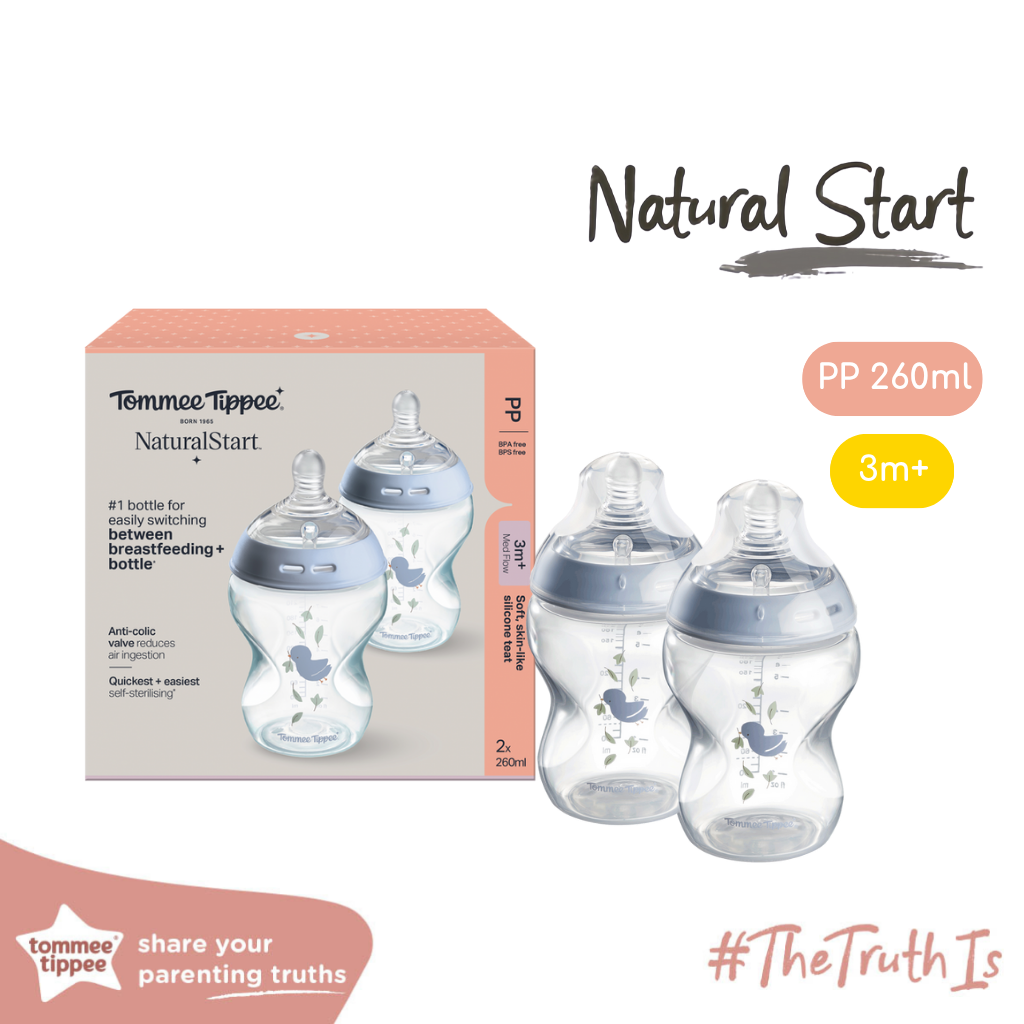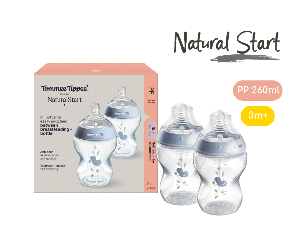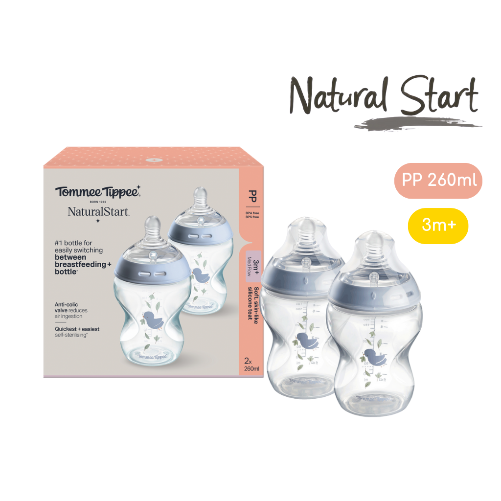 Bình Sữa PP Ty Siêu Mềm Tự Nhiên Tommee Tippee Natural Start 260ml, Núm Ty Của Bình 3-6 Tháng,