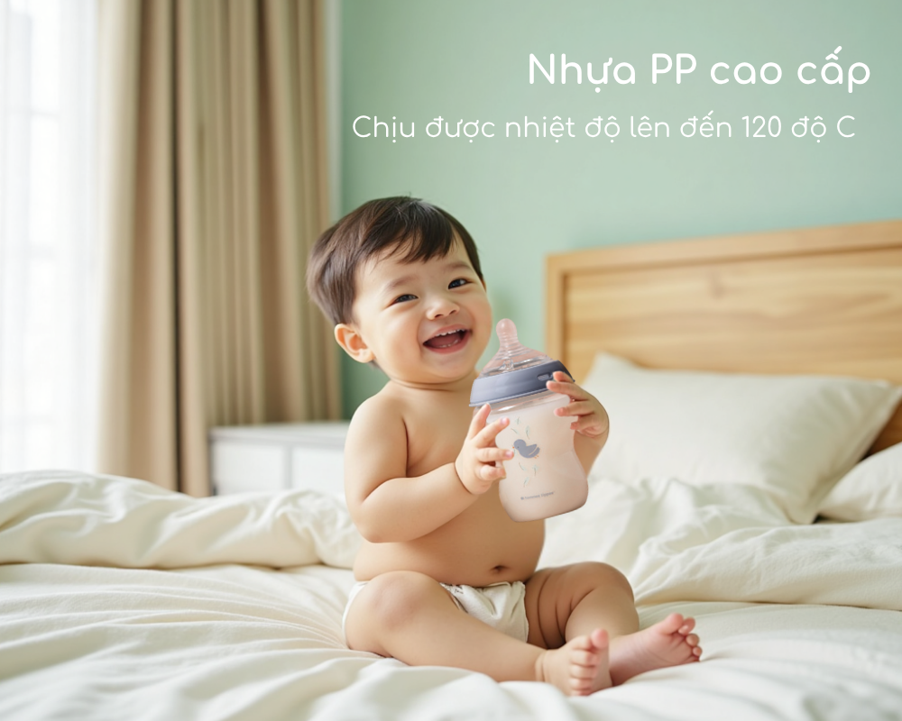 Nhựa PP là chất liệu không chứa hóa chất, chống bám mùi, sử dụng bền lâu và rất dễ cọ rửa làm sạch, do đó đây là vật liệu lý tưởng để làm bình sữa. Giống như tất cả các dòng bình sữa Natural Start khác của Tommee Tippee, bình sữa PP có núm ty siêu mềm tự nhiên, mô phỏng tự nhiên nhất từ xưa đến nay, co dãn đàn hồi và mềm mịn tạo cảm giác như ty mẹ, giúp cho việc chuyển đổi giữa bú mẹ và bú bình trở thành một trải nghiệm thoải mái, không còn lo lắng điều gì.