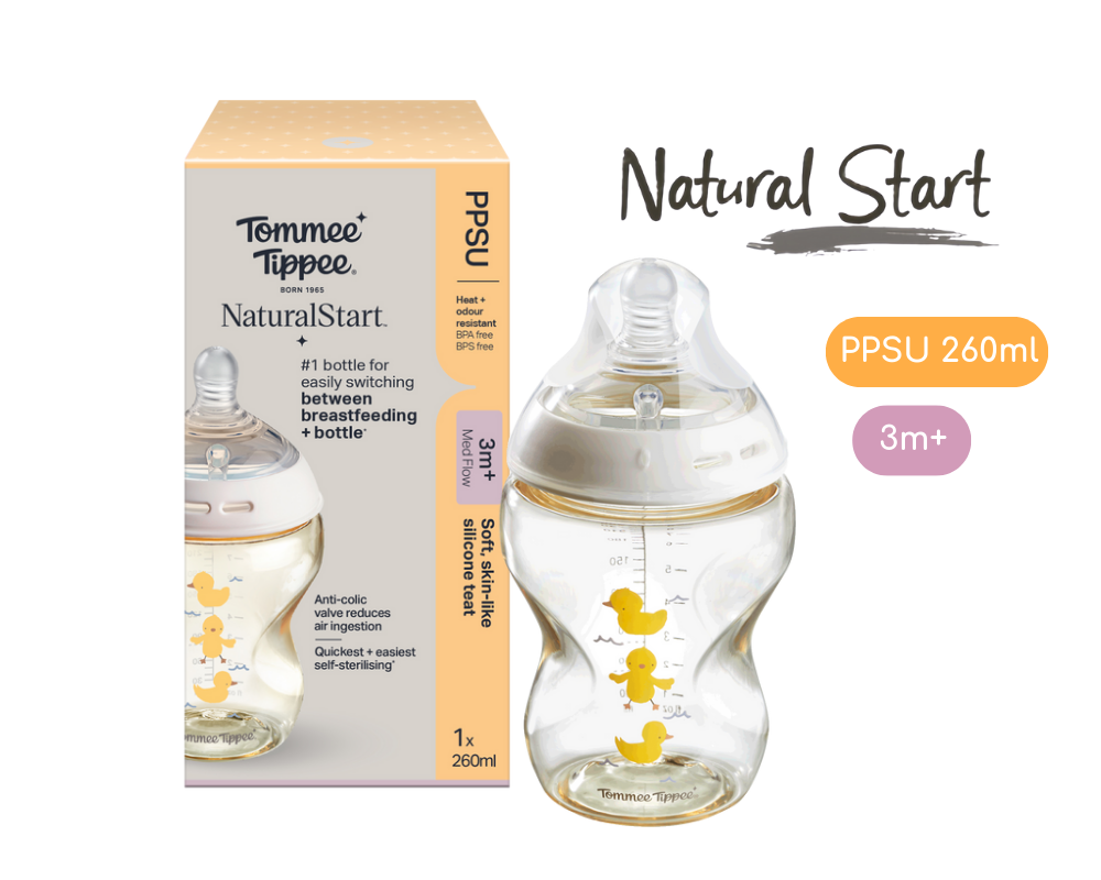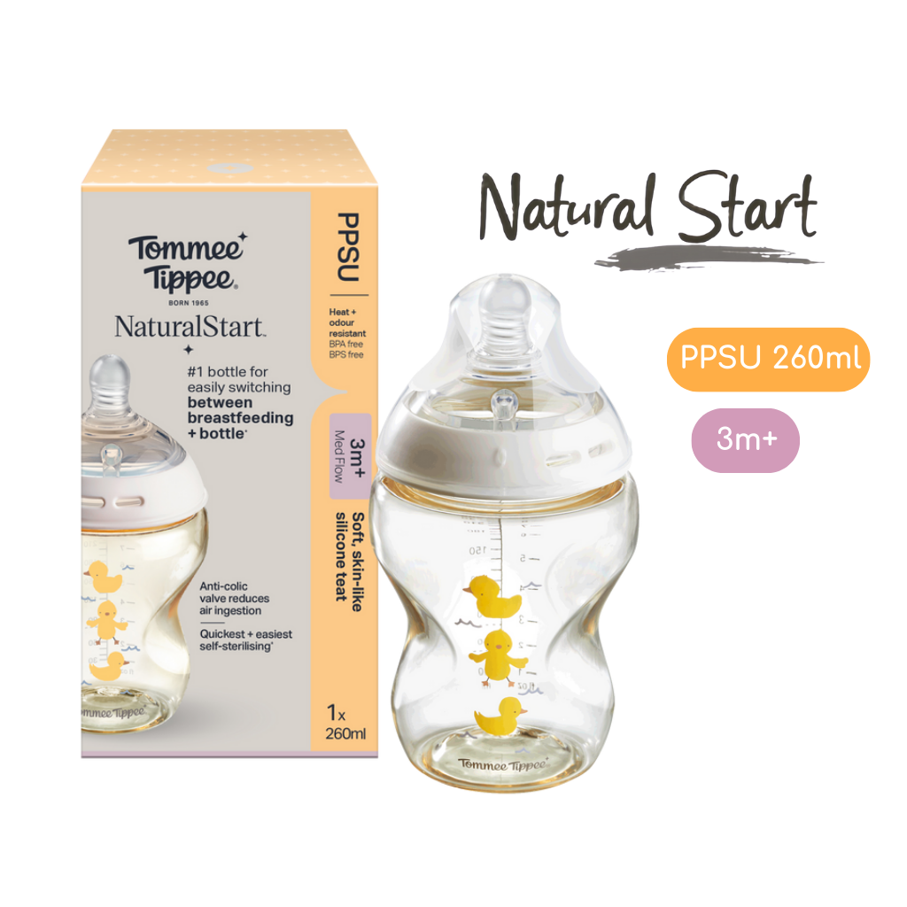 Bình Sữa PPSU Ty Siêu Mềm Tự Nhiên Tommee Tippee Natural Start 260ml, Núm Ty Của Bình 3-6 Tháng, Họa Tiết Vàng