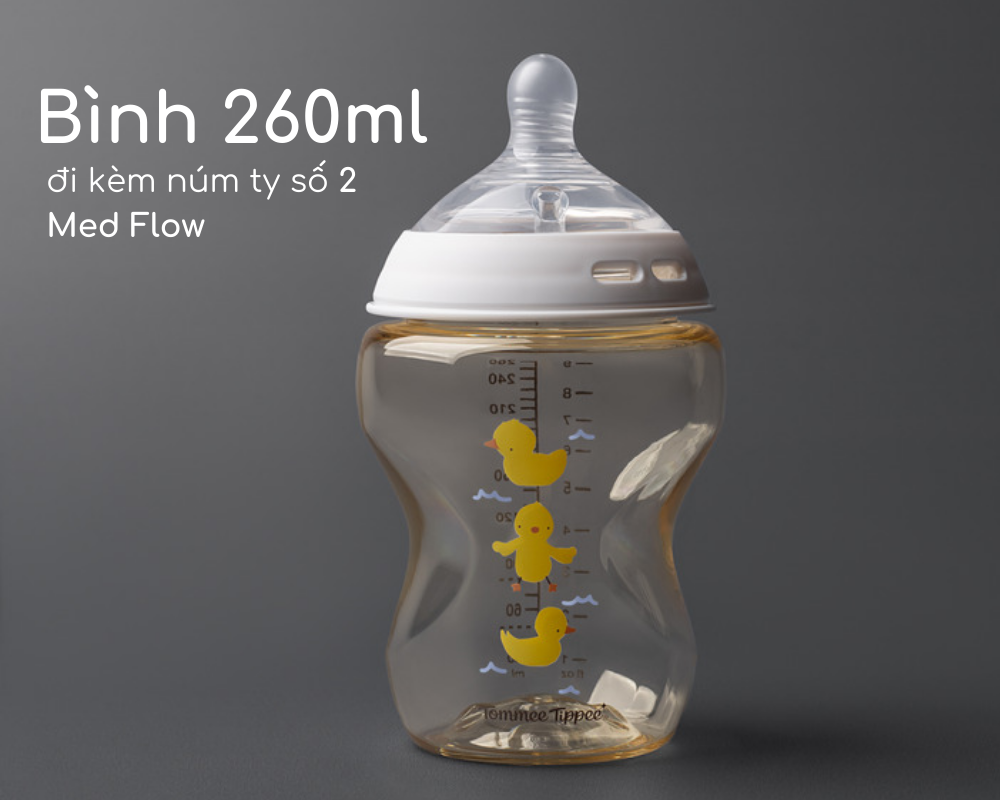 Bình sữa PPSU ty siêu mềm tự nhiên Tommee Tippee 260ml, họa tiết chính hãng