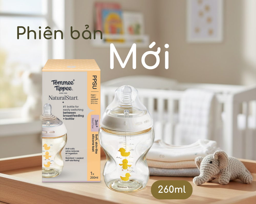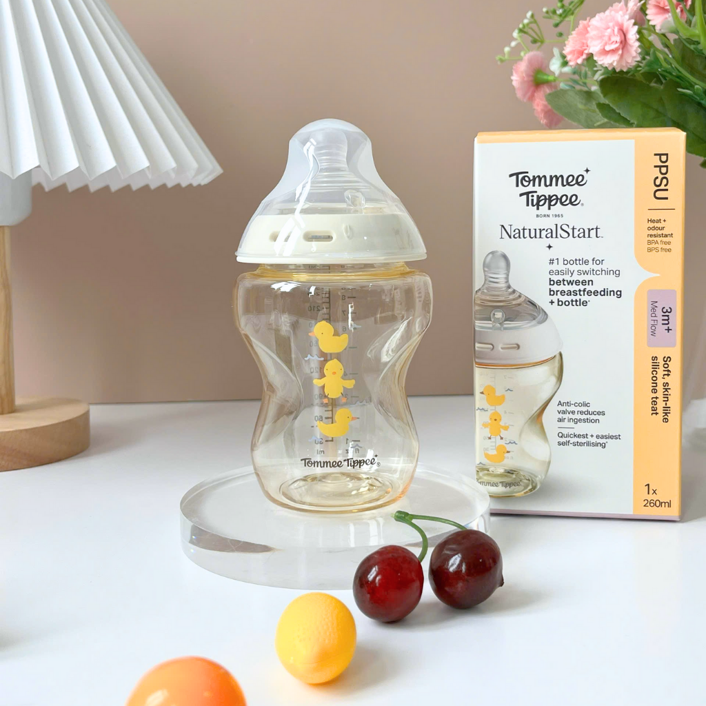 Bình Sữa PP Ty Siêu Mềm Tự Nhiên Tommee Tippee Natural Start 260ml, Núm Ty Của Bình 3-6 Tháng