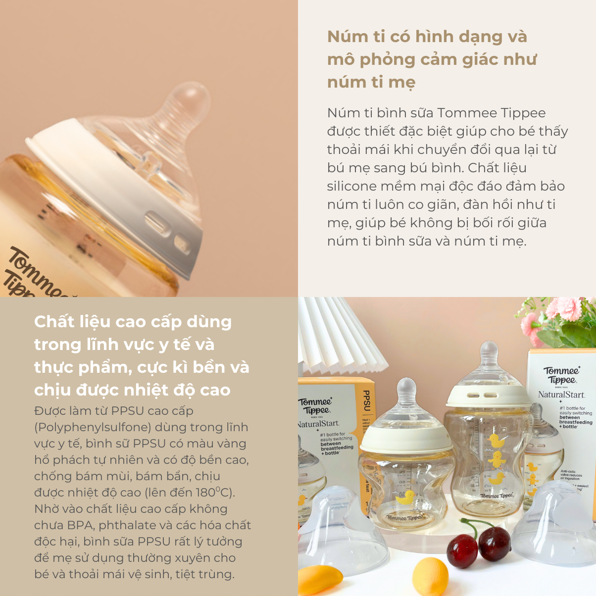 Đặc điểm bình sữa PPSU ty siêu mềm tự nhiên Tommee Tippee Natural Start: